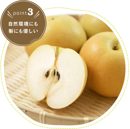 梨は水分の多い果物です。口にほおばったときのシャッキリとした食感、かむほどに爽やかな甘さの果汁があふれ出すみずみずしさが最大の特徴。もぎ取ってからお客さまの口に運ばれるまでの時間が短ければ短いほど、その美味しさを存分に味わっていただくことができるのです。
